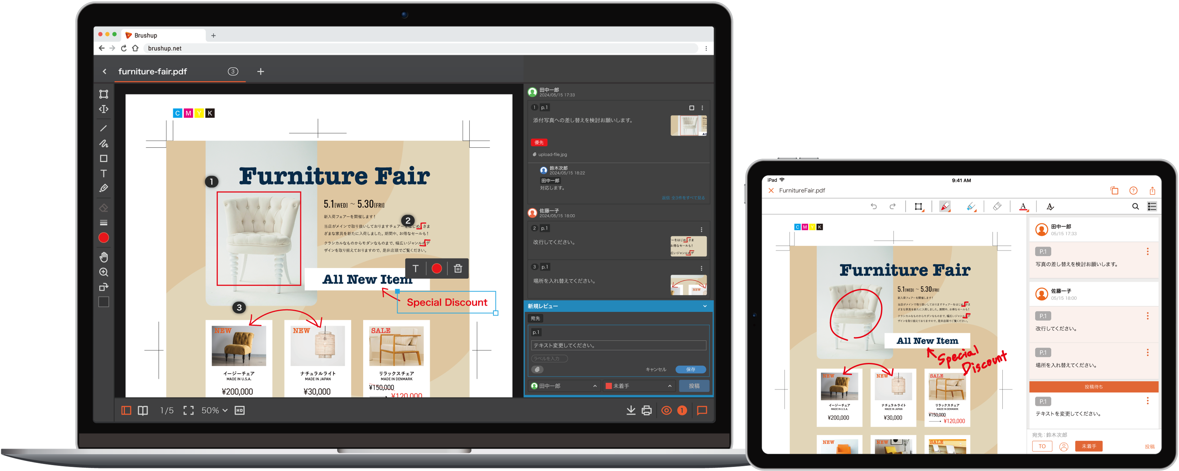 Brushupは、コンテンツ制作現場のためのコミュニケーションプラットフォームです。 チャットでのコメントやファイルのやりとり、オンライン上での赤入れなど、校正業務に関わるさまざまな機能を一元化し、コンテンツの制作に関わる人たちが本質的な作業に集中できる環境を提供します。 チラシ、カタログ、パンフレット、商品パッケージ、学習教材、マンガ、広報誌など、印刷・出版業界でのさまざまなコンテンツの制作現場で活用されています。
