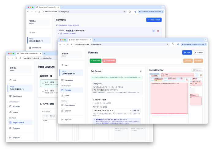 印刷外収益を作る。 印刷会社を熟知したスタッフによる伴走型サポートにより、印刷会社様の顧客の課題をシステム構築で解決します。 このようなシステム構築をサポートします。 ・複数人執筆案件の編纂効率化支援 ・刊行物のデジタル化対応支援 ・ 基幹システム補完(見積もり/発注処理の負荷削減)支援 https://tbpdigital.jp/web/