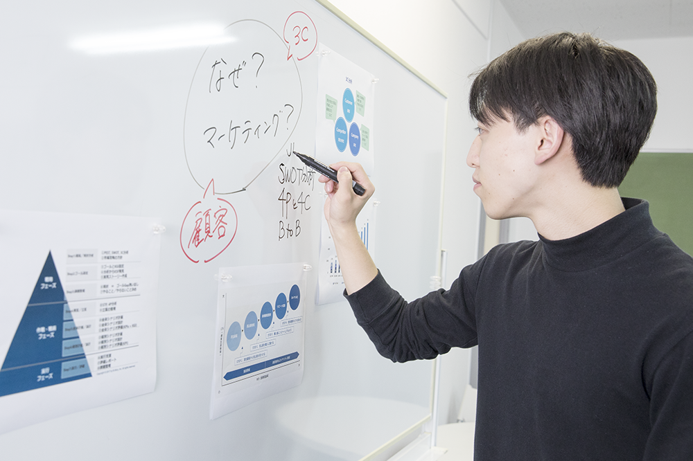 印刷メディア(紙媒体)をはじめ、Webメディアまで幅広いコンテンツを学ぶ学科です。印刷業界で必要とされる、プリント技術/マーケティング/印刷営業/プロジェクト・コスト・人の管理(マネジメント)の4つの分野を、レクチャー、ワーク&ディスカッション、プレゼンテーションを組み合わせて、体系的に「業界人」を育成します。また、授業受講定員を10名以下とし、一人ひとり目の届く教育体制で、基礎から実践、応用と即戦力を身につけます。1年次にファンデーション(基礎)を身につけ、2年次から学生の目指す職種にあった選択授業で、就職に向けて専門性を深めます。