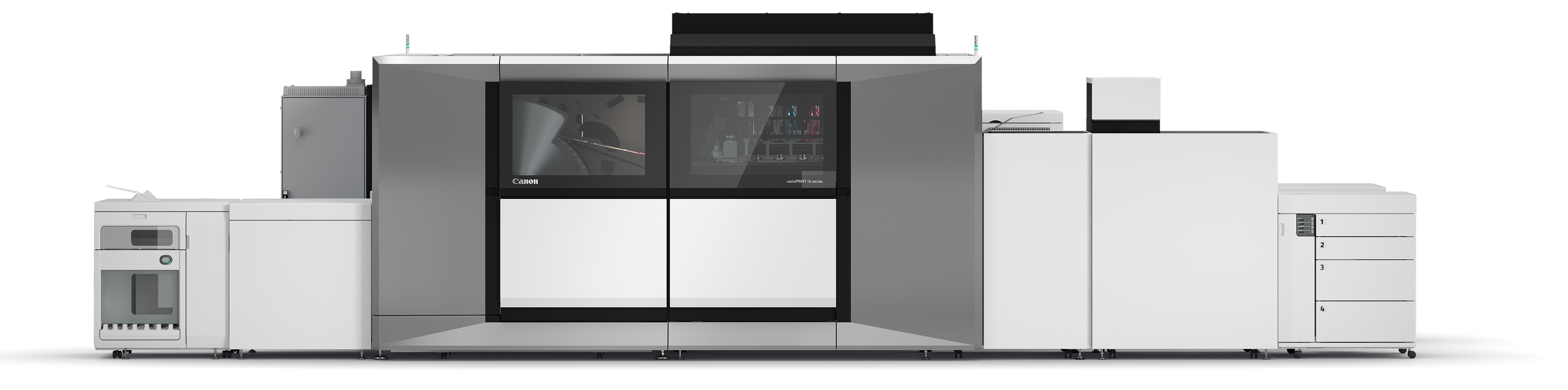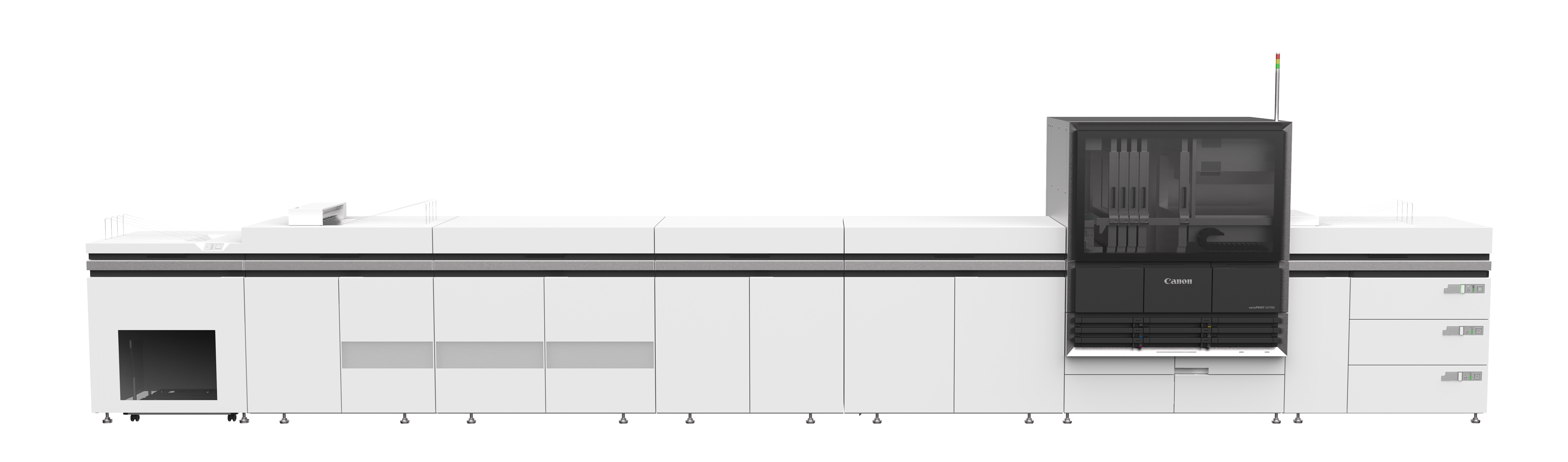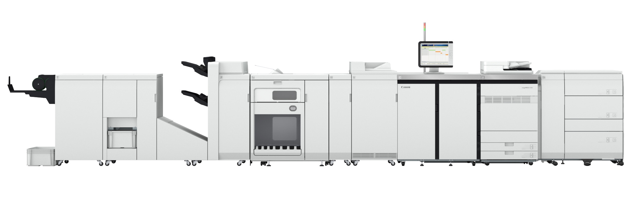 imagePRESS V1000に「検査装置」「自動調整ユニット」「除電装置」などのインラインオプションを接続し、オペレーションコストの削減と印刷物の安定品質を両立する仕組みをご提案します。